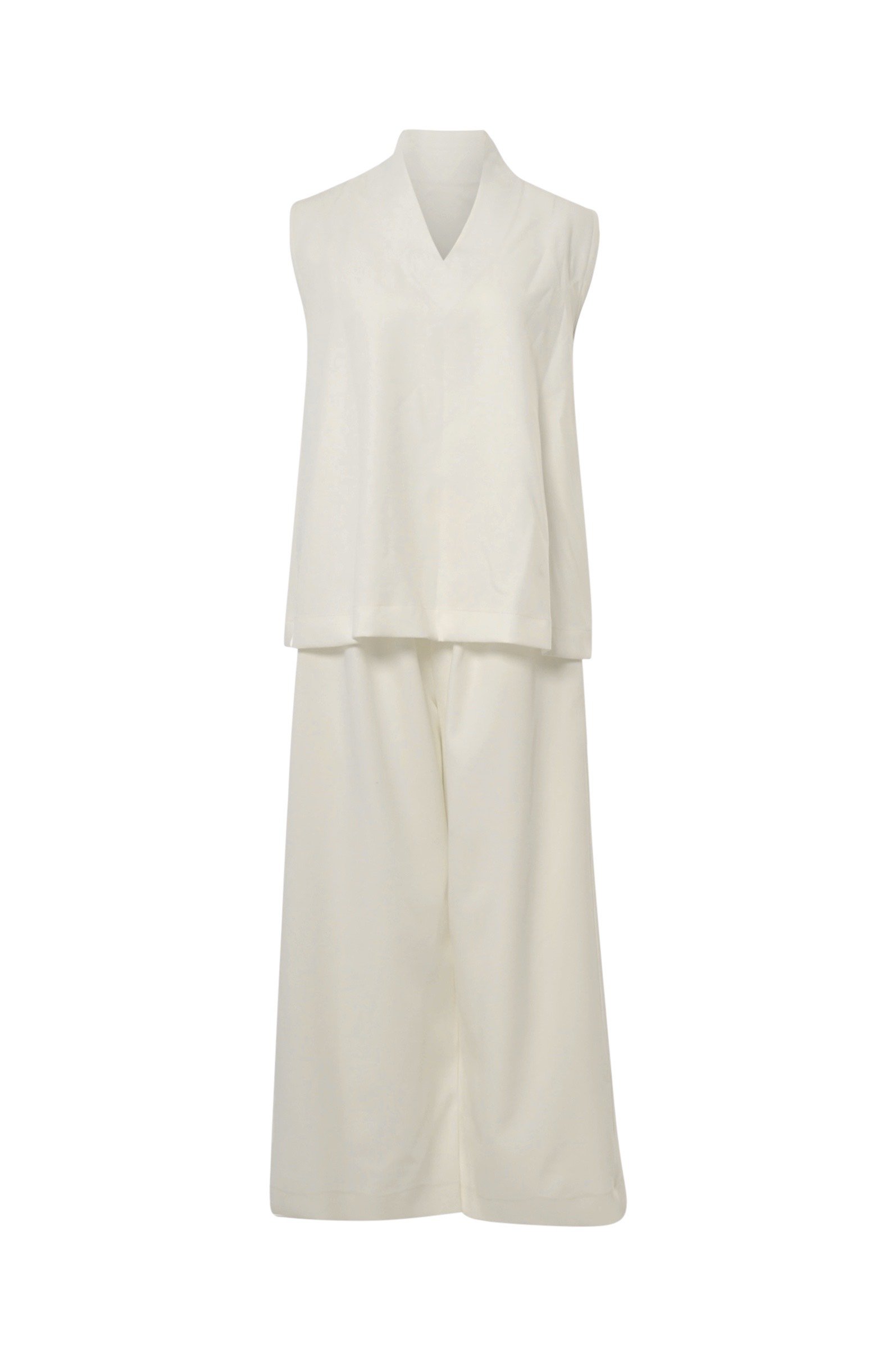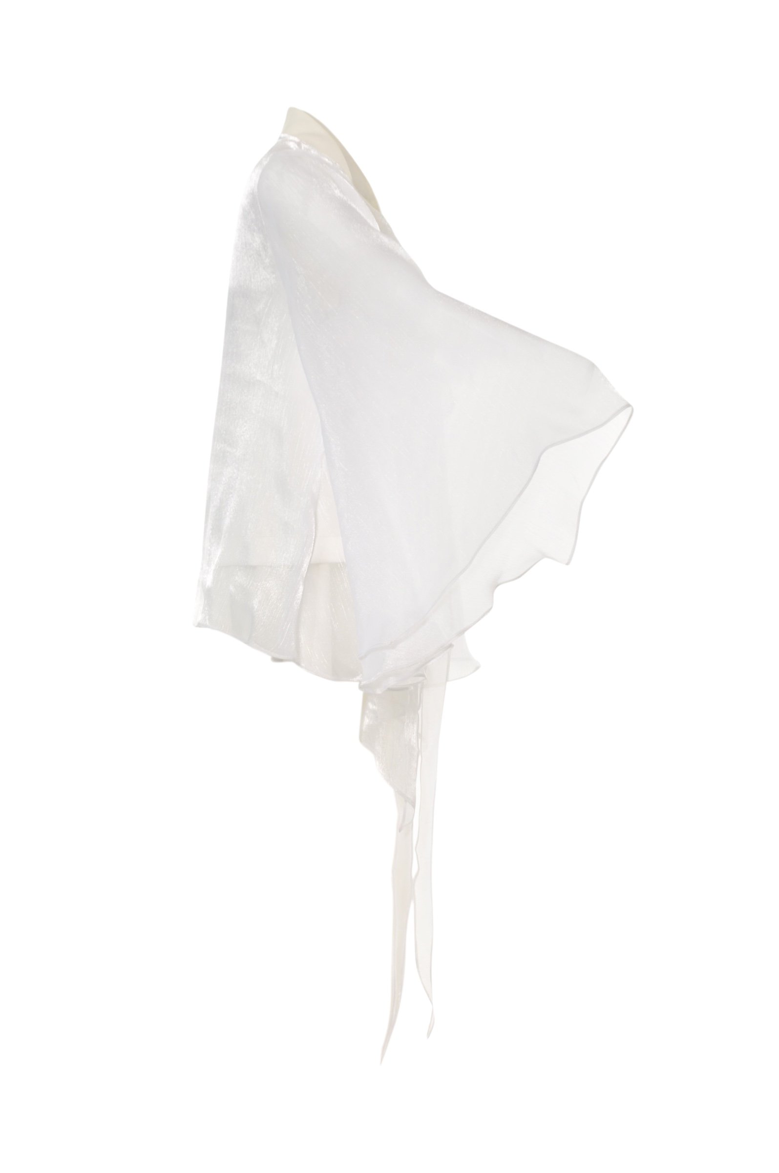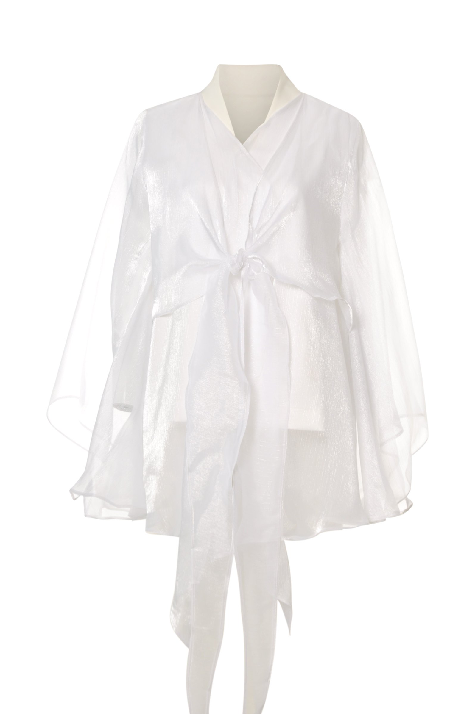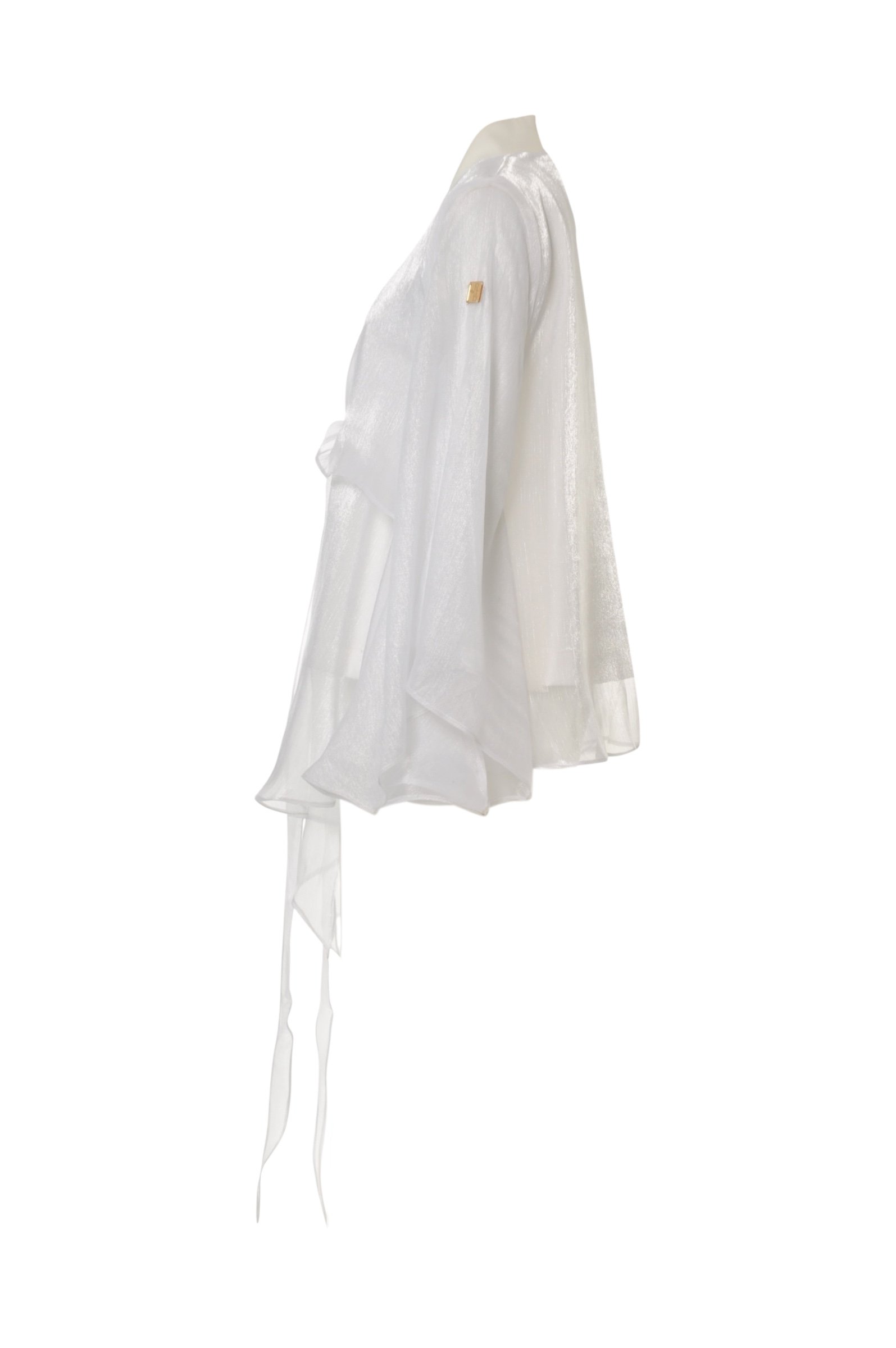 Elegant off-white chiffon robe with a waist tie + cut-out piece and pants